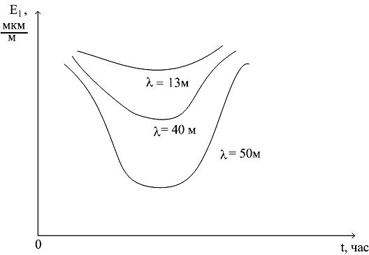 Е - единичная напряженность поля, которая определяется по графикам в зависимости от длины волны и времени суток (рисунок 12).
