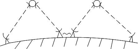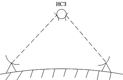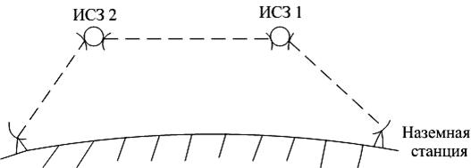 3. Связь оконечных земных станций через два ИСЗ с использованием наземной ретрансляции (рисунок 3).
