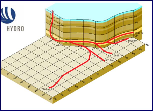 На рисунке 1.2 представлен реализованный с применением таких технологий проект многоствольной скважины с 5 стволами с длиной более 4000 метров каждый [11 12] на месторождении Тролл.