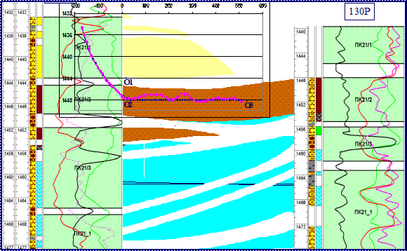 ‑ в условиях высокой расчлененности по латерали и низкому значению коэффициента песчанистости, проектирование строительства боковых горизонтальных стволов осуществляется с привлечением максимально возможных способов изучения геологических особенностей строения проектируемого участка разработки;