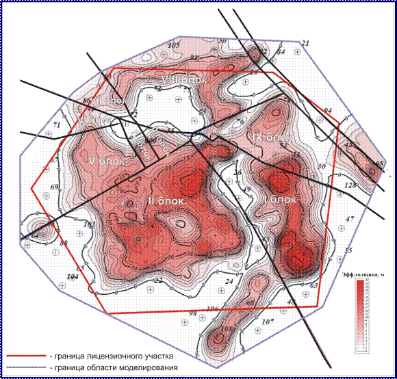 ‑ в условиях высокой геологической неоднородности, сильной изменчивости ФЕС, необходим индивидуальный подход к размещению добывающих и нагнетательных скважин, в пределах утвержденной блоковой трехрядной системы разработки;