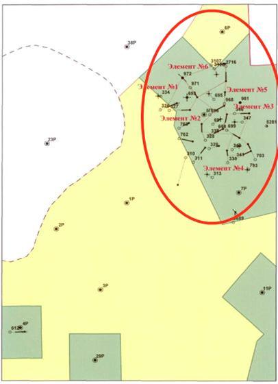 ‑ разновременность ввода и расположение скважин в элементах нарушает закономерность процесса выработки запасов элементов классической пятиточечной системы. Поэтому сравнение эффективности выработки запасов носит ориентировочный характер.