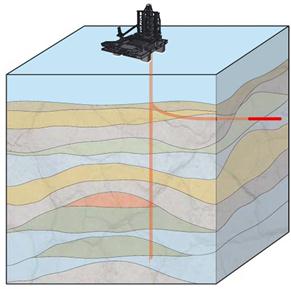 Применение новейших технологий строительства и исследования скважин обеспечивает реализацию проектов эксплуатационных скважин с большим отходом от вертикали и сложными траекториями в интервале продуктивного пласта с учетом указанных выше характеристик. Индивидуально-подбираемые для геологических условий месторождений составы буровых растворов обеспечивают качественное вскрытие залежи углеводородного сырья. Использование роторных управляемых систем позволяет значительно увеличить длину ориентированного горизонтального участка и область дренирования. Геологическое сопровождение горизонтального бурения в реальном времени обеспечивает обновление цифровой геологической модели месторождения на основе получаемой при углублении забоя информации. Современное программное обеспечение позволяет сопоставлять данные геофизических исследований (ГИС), поступающих во время бурения, с проектными данными. Причем по полноте информации о свойствах пласта этот комплекс ГИС сопоставим с каротажом в разведочных скважинах.