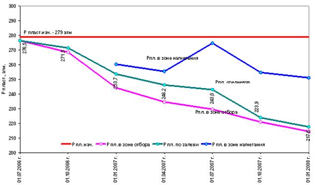 Рис. 1.23. Динамика изменения пластового давления. Северный участок. Родниковое месторождение