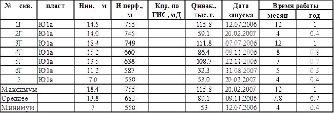 Как видно из таблицы 1.3, на Чатылькынском месторождении большая часть добывающего фонда пробурена с горизонтальным проложением ствола. По состоянию на 1.01.2008 г. на пласт Ю1а эксплуатируется 7 горизонтальных скважин (1Г, 2Г, 3Г, 4Г, 5Г, 6Г, 7), 5 из которых многоствольные (1Г, 2Г, 3Г, 4Г, 5Г).