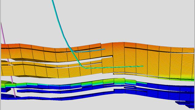 Рис. 1.39. Фрагмент гидродинамической модели с проектным профилем скважины 1002Г