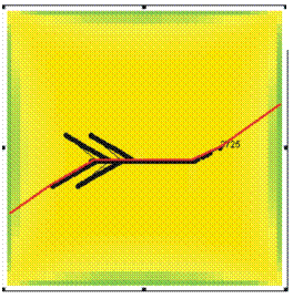 Рис. 1.40. Проектное расположение горизонтальных ответвлений (слева) и фактическое положение ответвлений (справа) скважины №3725 пласт ЮС1 Федоровского месторождения.