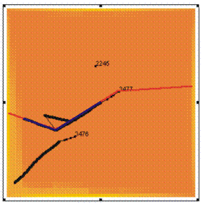 Рисунок 1.43 - Проектное расположение горизонтальных ответвлений (слева) и фактическое положение ответвлений (справа) скважины №3477 пласт ЮС1 Быстринского месторждения.