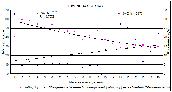 Рисунок 1.45 - Динамика дебитов и обводненности по скважине №3477 Быстринского месторождения