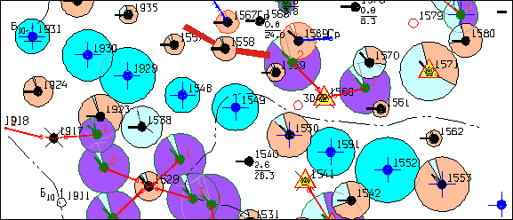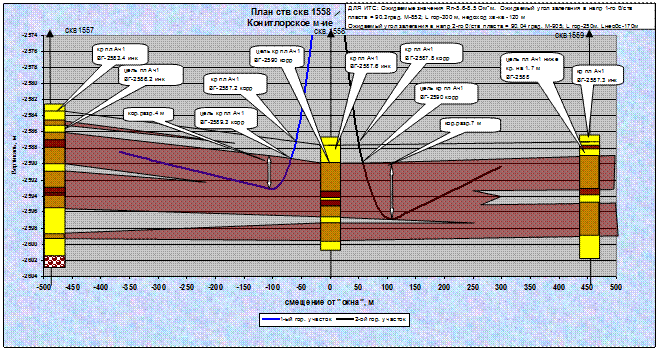 Ниже представлен пример проектирования расположения горизонтальных стволов скважины №1558 на пласт Ач1 Конитлорского месторождения (рис. 1.47).