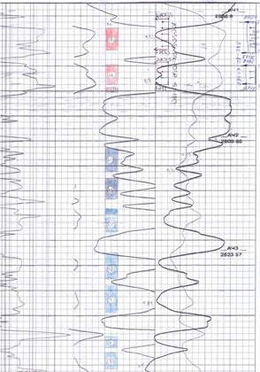 Первой была пробурена скважина 1001Г. При проектировании скважины 1001Г горизонтальной секции ствола детально изучался геологический разрез, полученный по результату пилотного каротажа. Как видно из схематического профиля (Рис. 1.34) разрез коллектора представляет собой монолитный песчаник мощность в ЧНЗ – 16м. Вертикальная проницаемость по такому разрезу была оценена в 6 раз меньше горизонтальной, наличие плотных пород в разрезе представлены маломощными включениями и не могут выполнять экранирующий эффект. Отсутствие экранов в разрезе способные удержать прорывы воды из подошвы пласта говорит о том, что горизонтальный ствол необходимо бурить в верхней части продуктивного пласта. В совокупности представленные факторы определили положение горизонтального ствола в пространстве, далее проектный ствол моделировался в программном комплексе «Petrel» компании Schlumberger, а расчеты проводились в программном комплексе «Eclipse 100» той же фирмы. На постоянно-действующей геолого-технологичской модели решены были задачи по выбору длины горизонтального ствола, выполнены технологические расчеты по работе данной скважины (дебит нефти, жидкости, накопленная добыча за прогнозный период). Произведена была оценка влияния скважины на окружение, и падение пластового давления в зоне отборов. После необходимых расчетов началась стадия реализации проектных решений.