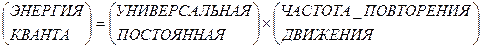 Эти ступеньки поведения удельной теплоемкости для каждого из ожидаемых значений были загадкой, пока не сообразили, что они получаются из ограничений на вращательную и колебательную энергии – ограничений квантового типа. Квантовые правила, возникшие при изучении другого явления - неожиданного поведения излучения, требуют, чтобы энергия на периодическое движение, такое, как колебания или вращения, воспринималась бы «порциями». Энергия каждой из таких «порций», или квантов, определяется правилом