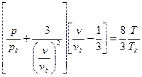 Однозначная связь коэффициентов a, b и R с pк, υк и Tк позволяет исключить их из уравнения состояния. Подставим в уравнение ван- дер - Ваальса полученные значения констант из зависимостей (3.20) и (3.21). Тогда