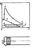 Принцип действия двигателей с подводом тепла при постоянном объеме ясен из рис.5.1, на котором изображена схема и индикаторная диаграмма четырехтактного двигателя.