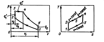 Рис. 5.2. Цикл поршневого двигателя с подводом тепла при V = const.
