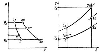 0 – 2а - адиабатическое сжатие, совершаемое в свободной струе перед двигателем за счет скоростного напора (0 -1а) и в компрессоре1а-2а;