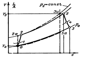 3и – 5а – адиабатическое расширение в газовой турбине (3и – 4а) и в реактивном сопле (4а -5а);