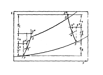3 – 4 – 5 – процесс политропического расширения (3 – 4 – процесс расширения в турбине; 4 – 5 – расширение в реактивном сопле при наличии потерь на трение как в турбине, так и в сопле);