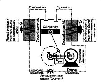 Невыгодность дросселировния, сопровождающегося диссипацией энергии, по сравнению с адиабатным расширением от рк до рисп с производством работы в расширительном цилиндре компенсируется существенным упрощением конструкции и удобством регулирования холодильной установки.