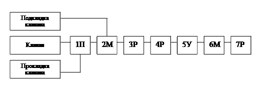 Граф технологического процесса дает представление о количестве деталей в изделии, о взаимосвязи между операциями порядке их выполнения, наличии параллельных операций. Операции изображают в виде квадратов или окружностей, в которых указывают номер неделимой операции, вид оборудования (или специальность).