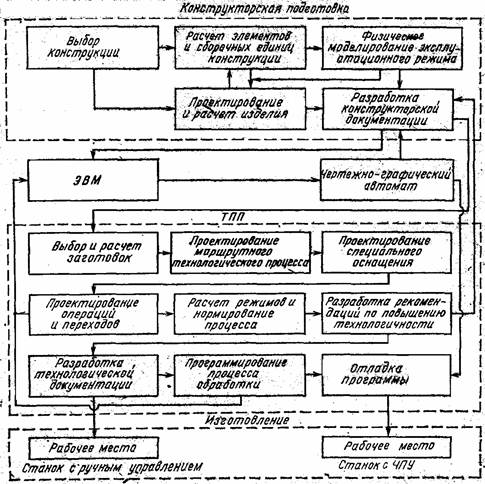 При решении задач ТеПП особое внимание следует уделить унификации и стандартизации изделий, технологических процессов, переналаживаемой технологической оснастки, станочных модулей и ГПС. Одновременно необходимо решить вопросы разработки единого математического и программного обеспечения систем автоматизированного проектирования, технологической подготовки, планирования и организации производства. От отдельных систем, способных решать лишь частные вопросы, следует переходить к созданию интегрированных систем, охватывающий весь производственный комплекс – исследования, конструкторские и технологические разработки, проектирование, планирование и организацию производства, управление технологическими процессами и качеством продукции и др. Это возможно только в условиях автоматизации ТеПП на основе единой информационной базы.