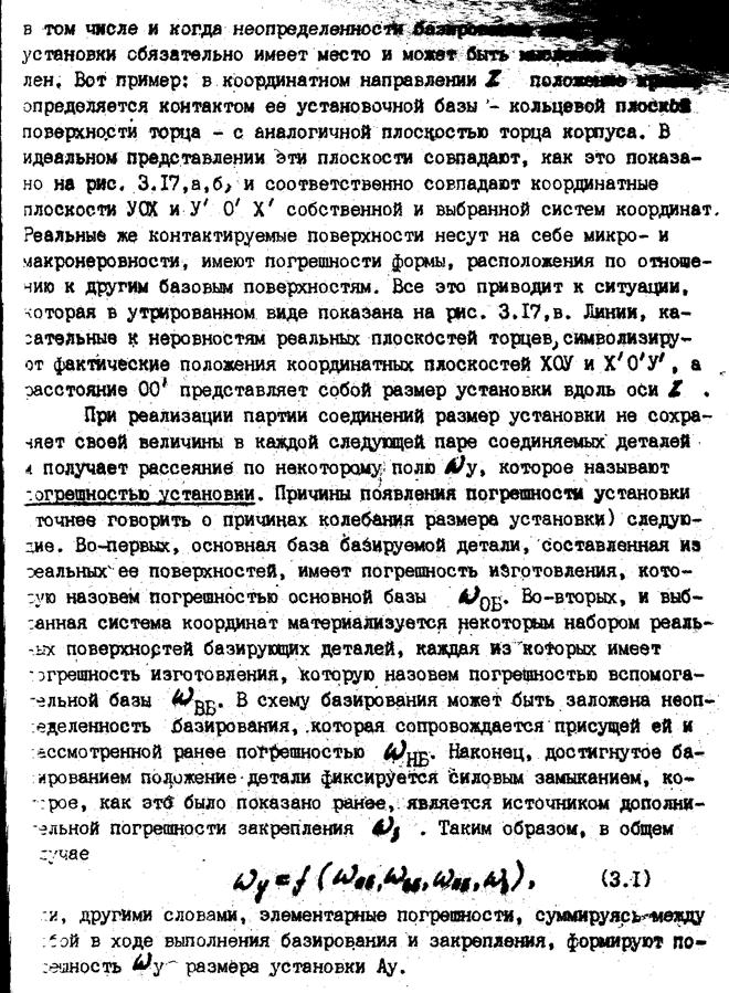 Достигнутое положение детали является результатом двух, как правило, выполняемых последовательно процессов – базирования и закрепления. Совокупность этих двух процессов называют установкой. Поскольку под установкой практически понимается реализация схем базирования и закрепления, можно с уверенностью утверждать, что ее результат, как и у всякого реального процесса, в какой-то степени приближается к идеально намеченному (требуемому), но не совпадает в общем случае с ним. Это означает необходимость количественной оценки степени приближения достигнутого положения к требуемому. Такая оценка может быть дана размером установки, который представляет собой расстояние (относительный поворот) между достигнутым и требуемым положением основной базы базируемой детали в определенном координатном направлении. Так, например, достигнутое положение крышки подшипника в направлении Y на рис.2б оценивается размеров установки Ау между фактическим положением координатной плоскости XOZ и ее требуемым положением XOZ. Наглядность этого примера создает неопределенность базирования в пределах зазора D, однако и в любом другом случае, в том числе и когда неопределенности базирования нет, размер установки обязательно имеет место и может быть мысленно представлен. Вот пример: в координатном направлении Z положение крышки определяется контактом ее установочной базы – кольцевой плоской поверхности торца