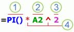 1. Функции. Любая функция, например ПИ(), всегда начинается со знака равенства (=). В круглые скобки вводятся аргументы (Аргумент. Значения, используемые функцией для выполнения операций или вычислений. Тип аргумента, используемого функцией, зависит от конкретной функции. Обычно аргументы, используемые функциями, являются числами, текстом, ссылками на ячейки и именами.) функции. Каждая функция имеет собственный синтаксис аргументов.