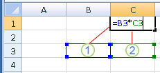 2. Вторая ссылка на ячейку – C3, цвет – зеленый, и диапазон ячеек имеет зеленую границу с квадратными углами.