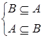 Из соотношений А Ì В и В Ì С следует соотношение A Ì С; следовательно, отношение включения транзитивно. Заметим, что из А Ì В и B Ì A следует А = В, и наоборот. Действительно, два множества равны (идентичны), если они состоят из одних и тех же элементов.
