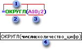 Следующий пример функции ОКРУГЛ, округляющей число в ячейке A10, иллюстрирует синтаксис функции: