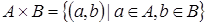 Декартово произведение множеств A и B – это множество упорядоченных пар, первый элемент которых принадлежит A, а второй – принадлежит B.