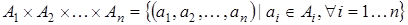 Свойство ассоциативности позволяет использовать сокращенную запись для декартова произведения нескольких множеств: