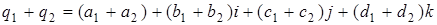 На множестве кватернионов определяют два внутренних закона. Аддитивный закон задается подобно сложению комплексных чисел, т.е. сумма кватернионов
