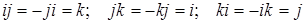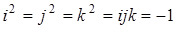 Действительно, умножая справа на k обе части равенства ijk = -1, имеем ijk2 = - k или ij = k. Умножая полученное уравнение на j справа или на i слева, получаем соответственно - i = kj или - j = ik и т. д.