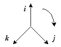 | Геометрически умножение кватернионов легко представить с помощью диаграммы (рис. 7.2): произведение двух кватернионов равно третьему со знаком «+», если поворот от первого сомножителя ко второму осуществляется по часовой стрелке, и со знаком «-», если поворот против часовой стрелки. | Рис.7.2. Умножение кватернионов |