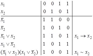 Из этих зависимостей следует, что любая функция двух переменных (включая константы) выражается в аналитической форме через совокупность шести функций, содержащей отрицание