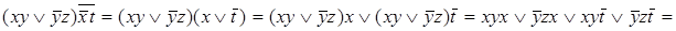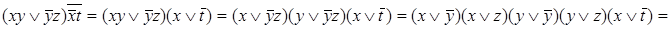 Функция приводится к нормальной форме следующим путем: 1) с помощью законов де Моргана формула преобразуется к такому виду, чтобы знаки отрицания относились только к отдельным переменным; 2) на основе первого (второго) дистрибутивного закона формула сводится к дизъюнкции конъюнкций (конъюнкции дизъюнкций); 3) полученное выражение упрощается и соответствии с тождествами