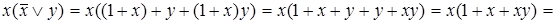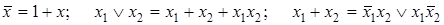 Таким образом, в формулах алгебры Жегалкина, как и в булевой алгебре, не могут появляться коэффициенты при переменных и показатели степени. С помощью табл. 9.1 выводятся также следующие соотношения: