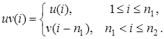 Пусть u и v – слова над алфавитом А длины n 1 и n 2 соответственно. Упорядоченной склейкой слов u и v называется слово uv длины n 1 + n 2, заданное следующим правилом: