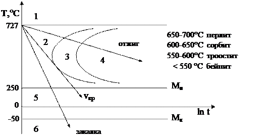 Рис 7.2. Диаграмма изотермического распада аустенита.
