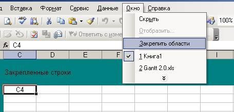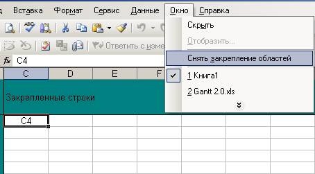 Чтобы снять закрепление в меню «Окна» выберете пункт «Снять закрепление областей» (Рис.3).