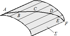 Линия принадлежит поверхности, если все ее точки принадлежат соответствующим линиям этой поверхности. На рис. 19 показана линия, расположенная на цилиндрической поверхности Σ. Она задана дискретным рядам точек (A, B, C, D, E, F), принадлежащих образующим этой поверхности.