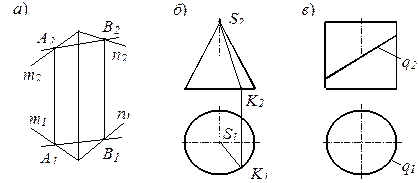 - прямая SK - конической поверхности (рис. 20, б);
