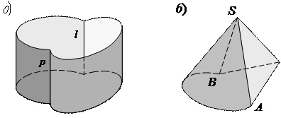 На рис. 52, а приведен пример пересечения на наглядном чертеже поверхностей двух цилиндров по образующим l и p, а на рис. 52, б поверхностей пирамиды и конуса по прямым SA и SB. Очевидность этих случаев пересечения не требует доказательства.