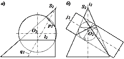 На рис. 53, а приведен пример пересечения на комплексном чертеже (показана только фронтальная проекция) поверхностей эллиптического конуса с круговым основанием и сферы по двум окружностям p и l.