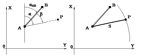 ; αΑΒ – дирекционный угол линии ΑΒ, вычисляемый из решения обратной геодезической задачи между точками Α и Β; X, Y – координаты любой точки линии ΑΡ, в том числе и точки Ρ.
