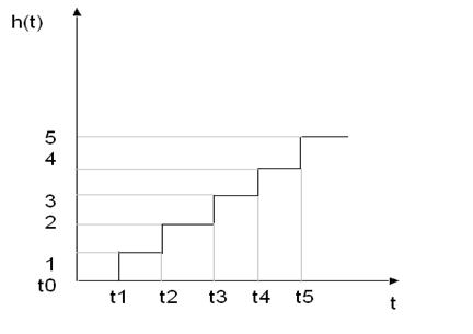 Первый способ заключается в изучении некоторого случайного процесса η(t) – числа отказов на промежутке времени (0;t) – см. график функционирования.