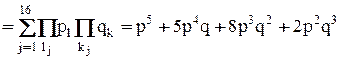 | 15. | - | + | - | + | - | Р2 Р5 q1 q3 q5 | = 0.13*0.92 |