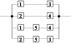 Для мостиковой схемы: Набор минимальных путей