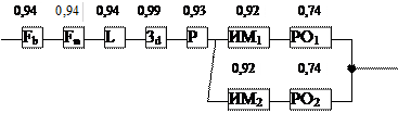 Так как структурная схема надежности параллельно последовательная, то в этом случае умножаются вероятности отказов: